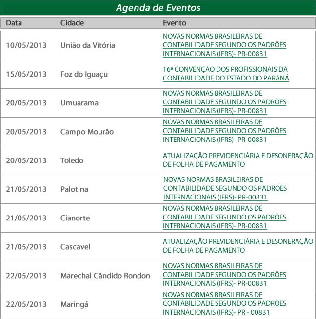 Saiba mais… Saiba mais… Saiba mais… Saiba mais… Saiba mais… Saiba mais… Saiba mais… Saiba mais… Saiba mais… Saiba mais… Site da 16ª Convenção Saiba mais… Leia mais… Saiba mais… Saiba mais… Saiba mais… Saiba mais… Saiba mais… Saiba mais… Saiba mais… Saiba mais… Clique aqui para ir para a página de inscrição… Clique aqui para saber mais sobre o programa… Clique aqui para maiores informações… Clique aqui para ir para a página de inscrição… Clique aqui para ver a programação… Saiba mais… 2013 - Ano da Contabilidade no Brasil Descadastre-se para não receber mais nossos emails… Fale conosco Cursos e eventos da sua cidade Site oficial do CRCPR