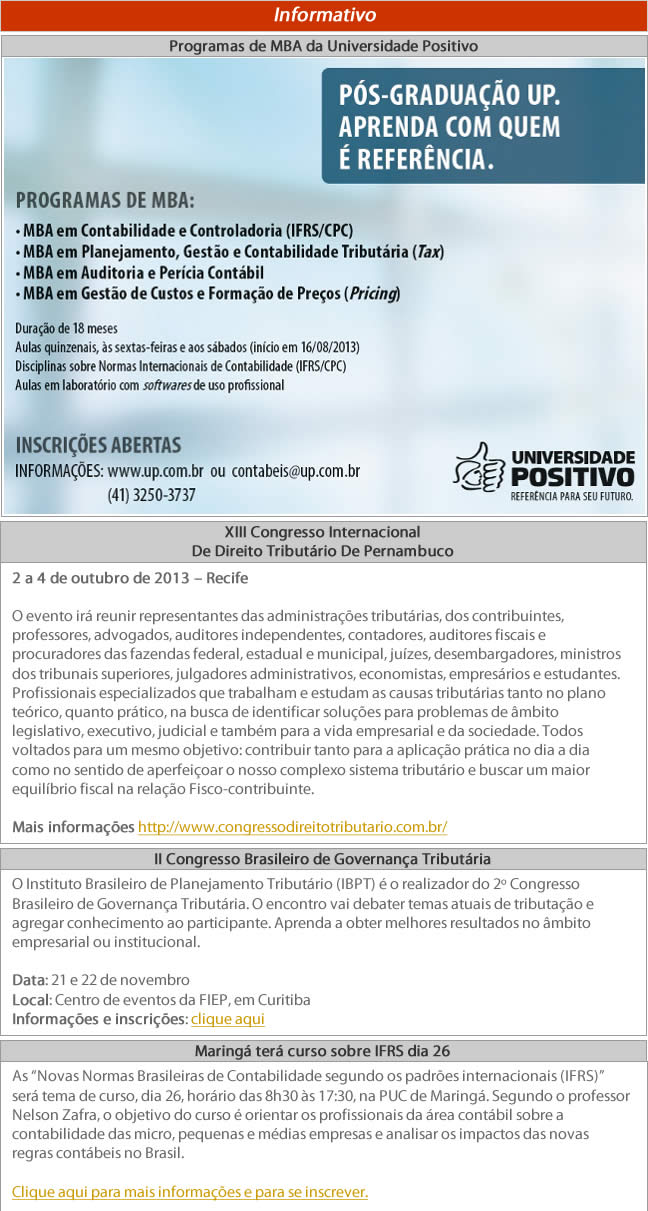 Saiba mais… Saiba mais… Saiba mais… Saiba mais… Saiba mais… Saiba mais… Saiba mais… Saiba mais… Saiba mais… Saiba mais… Saiba mais… Saiba mais… Saiba mais… Enviar email… Universidade Positivo Congresso Direito Tributário Congresso Direito Tributário CIC Uruguay Clique aqui para ir para a página de inscrição… Clique aqui para saber mais sobre o programa… Clique aqui para maiores informações… Clique aqui para ir para a página de inscrição… Clique aqui para ver a programação… 2013 - Ano da Contabilidade no Brasil Descadastre-se para não receber mais nossos emails… Fale conosco Cursos e eventos da sua cidade Site oficial do CRCPR