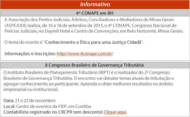 Saiba mais… Saiba mais… Saiba mais… Saiba mais… Saiba mais… Saiba mais… Saiba mais… Saiba mais… Saiba mais… Enviar email… 2013 - Ano da Contabilidade no Brasil Descadastre-se para não receber mais nossos emails… Fale conosco Cursos e eventos da sua cidade Site oficial do CRCPR Clique aqui para ir para a página de inscrição… Clique aqui para saber mais sobre o programa… Clique aqui para maiores informações… Clique aqui para ir para a página de inscrição… Clique aqui para ver a programação…