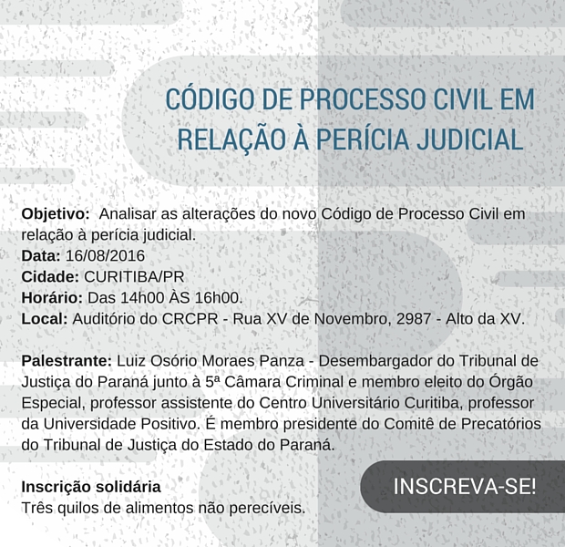 Palestra gratuita, dia 16, aborda as mudanças da perícia judicial no novo Código de Processo Civil