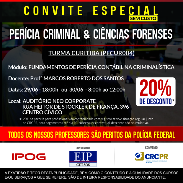 O evento ocorrerá na sede do CRCPR, em Curitiba.