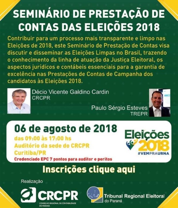 Gratuito, Seminário de Prestação de Contas das Eleições – 2018 pontua 7 pontos no EPC para auditores e peritos