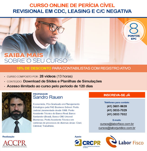 O curso vale 04 pontos no EPC e serão disponibilizados descontos do CRCPR