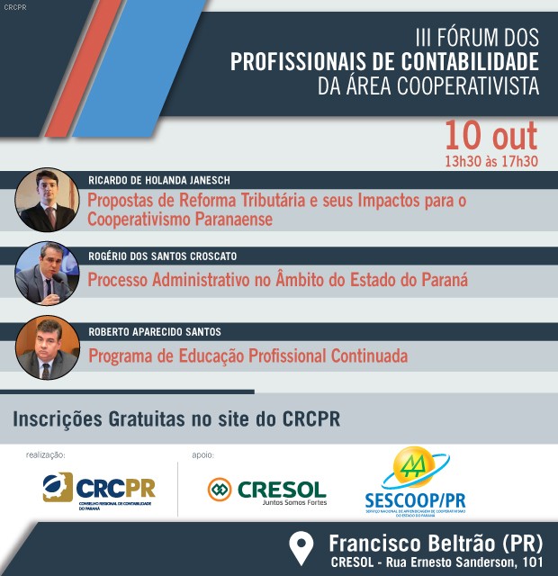 Francisco Beltrão receberá o III Fórum dos Profissionais de Contabilidade da Área Cooperativista