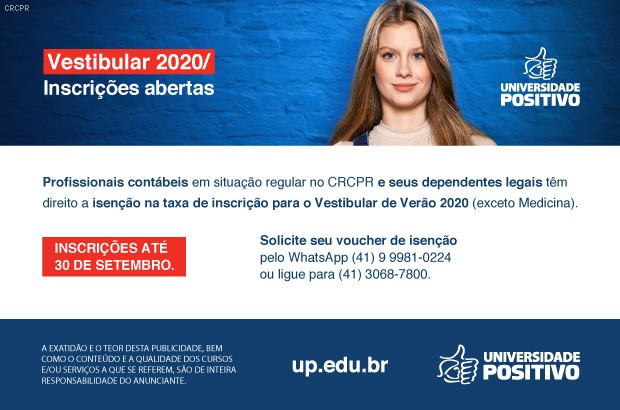 Profissional contábil do Paraná e seus dependentes têm isenção da taxa de inscrição do Vestibular de Verão 2020 da UP