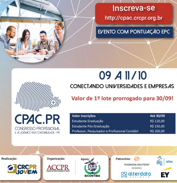O prazo para a atualização cadastral e para a regularização de situação financeira no CRCPR vai até o dia 8/11