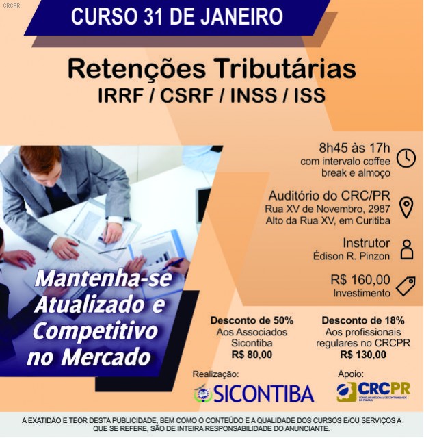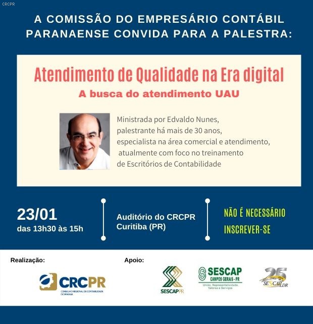 Palestra gratuita promovida pela Comissão do Empresário Contábil em Curitiba será na quinta, 23/1, às 13h30