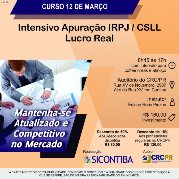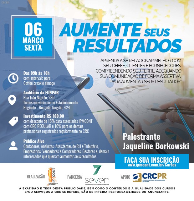 Evento acontecerá no Auditório do CRCPR no dia 27 de março