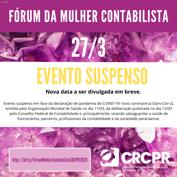 Suspenso evento Fórum da Mulher Contabilista 2020, que aconteceria no próximo dia 27!