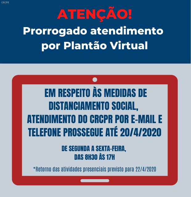 CRCPR prorroga por 15 dias suspensão de atendimento e eventos presenciais em sua sede e escritórios regionais