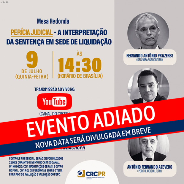 ADIADA a Mesa Redonda sobre “Perícia Judicial – A Interpretação da Sentença em Sede de Liquidação” que seria transmitida no próximo dia 9