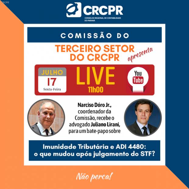 Comissão do Terceiro Setor do CRCPR promove LIVE sobre o tema "Imunidade Tributária e ADI 4480: o que mudou após o julgamento do STF?"