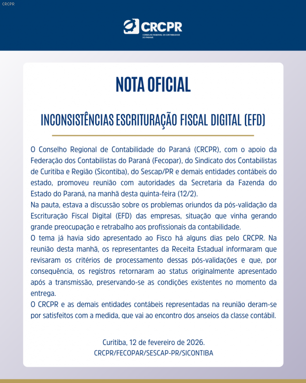 CRCPR obtém esclarecimentos da Receita Estadual sobre alertas enviados às organizações contábeis
